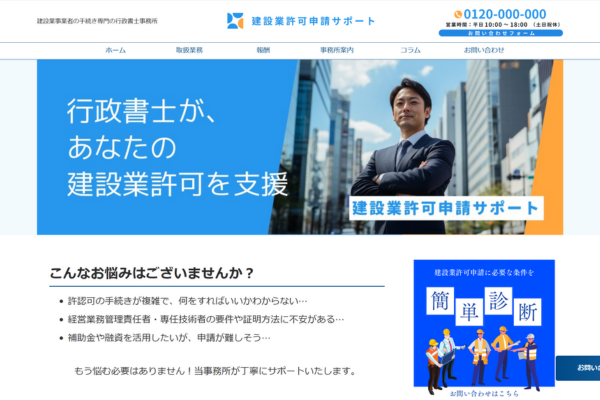 | 建設業サイト | 「都道府県 行政書士 建設業」 で4位! |